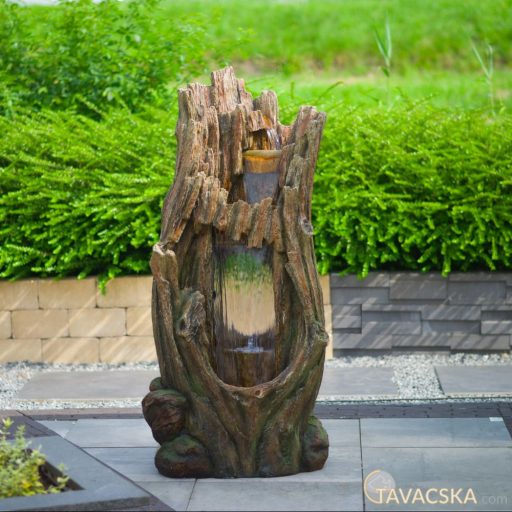 Egy odvas fatörzs természethű és impozáns megjelenítése. Beépített vízeséssel és kisméretű, LED világítású vízlépcsőkkel. Könnyű és az időjárásnak ellenálló anyagból készült, saját víztartállyal és szivattyúval.
