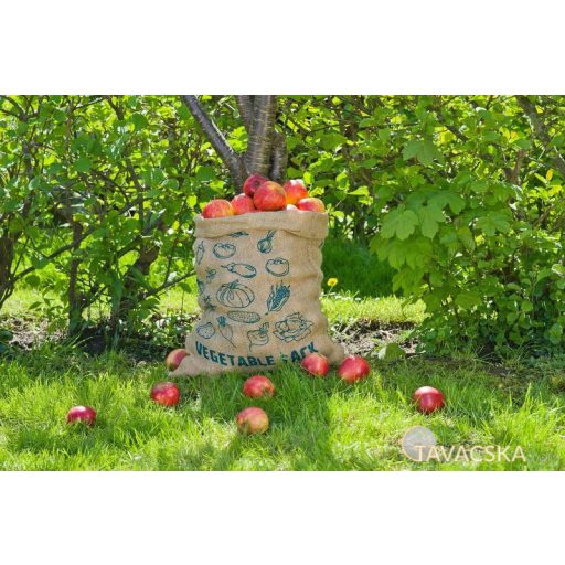 Jutazsákok gyümölcs és zöldség tárolásához, nyomtatott mintával. 22 literes(10kg), és 33 literes(20kg) térfogatú változatban kaphatók. Méretenként 2db-os csomagolásban. Biológiailag lebomló.